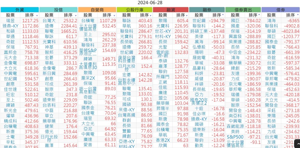2024-0628市【外資、投信】買賣超個股 2024-06-29 股狗網小編 投資誌-大盤 發表留言 上市:【外資、投信】買超(依金額) (單位:百萬) 上市:【外資、投信】賣超(依金額) (單位:百萬) 上市:【外資、投信】買超(依張數) (單位:張數) 上市:【外資、投信】賣超(依張數) (單位:張數) 免責宣言 本網站文章所提供資訊僅供參考,並無任何推介買賣之意,投資人應自行承擔交易風險。 分享此文: 按一下即可分享至 X(在新視窗中開啟) X 按一下以分享至 Facebook(在新視窗中開啟) Facebook 喜歡 正在載入...