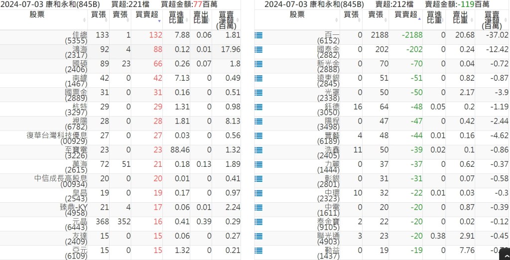 2024-0703關鍵券商買賣超 2024-07-03 股狗網小編 籌碼面每日資訊 發表留言 關鍵券商買賣超: 臺銀證券(1040): 台灣摩根士丹利(1470): 凱基台北(9268): 凱基信義(9216): 元大土城永寧(9875): 康和永和(845B) : 富邦建國(9658): 免責宣言 本網站文章所提供資訊僅供參考,並無任何推介買賣之意,投資人應自行承擔交易風險。 分享此文: 按一下即可分享至 X(在新視窗中開啟) X 按一下以分享至 Facebook(在新視窗中開啟) Facebook 喜歡 正在載入...