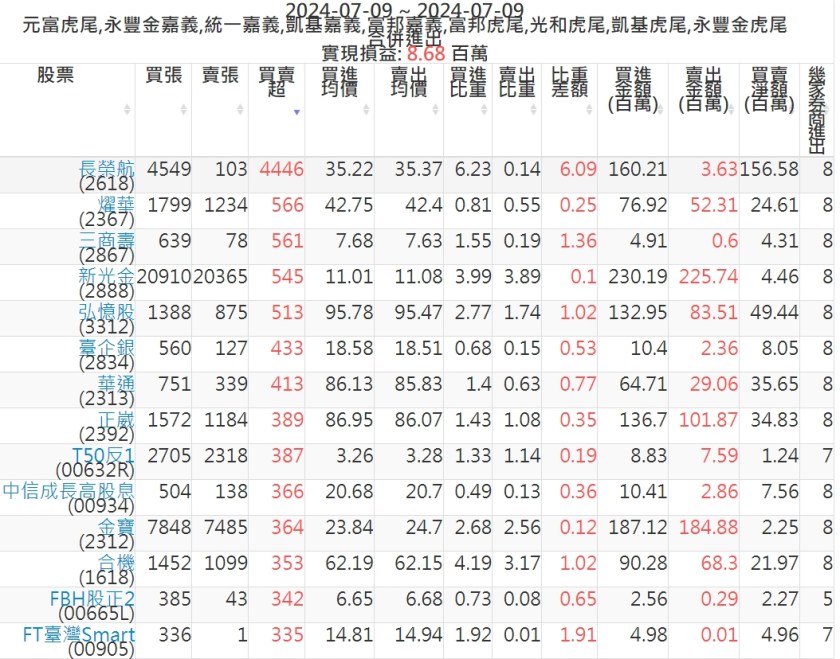 2024-0709主力買賣超個股 2024-07-09 股狗網小編 籌碼面每日資訊 發表留言 可參考下文 『如何查詢當沖、隔日沖分公司券商買賣』 主力當沖券商: 『元富虎尾』,『永豐金嘉義』,『統一嘉義』,『凱基嘉義』,『富邦嘉義』,『富邦虎尾』,『光和虎尾』,『凱基虎尾』,『永豐金虎尾』。 『當沖標的』 『買超股票』 『賣超股票』 免責宣言 本網站文章所提供資訊僅供參考,並無任何推介買賣之意,投資人應自行承擔交易風險。 分享此文: 分享到 X(在新視窗中開啟) X 分享到 Facebook(在新視窗中開啟) Facebook 喜歡 正在載入...