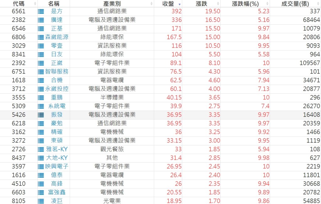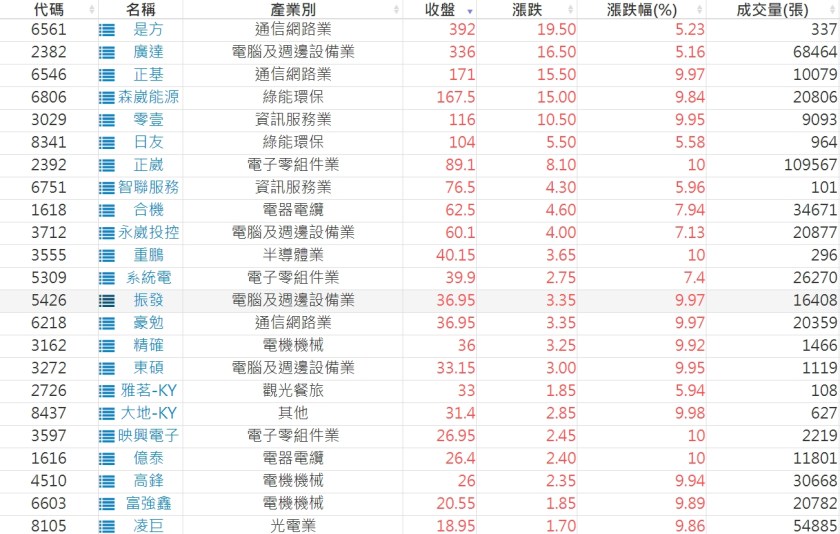 2024-0709日新高爆量上漲股 2024-07-09 股狗網小編 選股條件 發表留言 利用股狗選股的選股條件可以【挑選突破20日新高,爆量上漲起漲點股票】 1.股狗選股 https://www.stockdog.com.tw 2.選股條件: a.收盤價創20日新高 b.當日漲幅 > 2% C.成交量大於5日均量2倍 免責宣言 本網站文章所提供資訊僅供參考,並無任何推介買賣之意,投資人應自行承擔交易風險。 分享此文: 分享到 X(在新視窗中開啟) X 分享到 Facebook(在新視窗中開啟) Facebook 喜歡 正在載入...