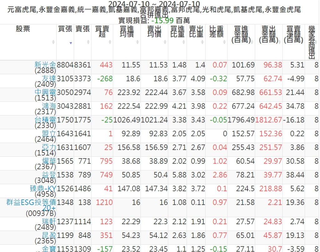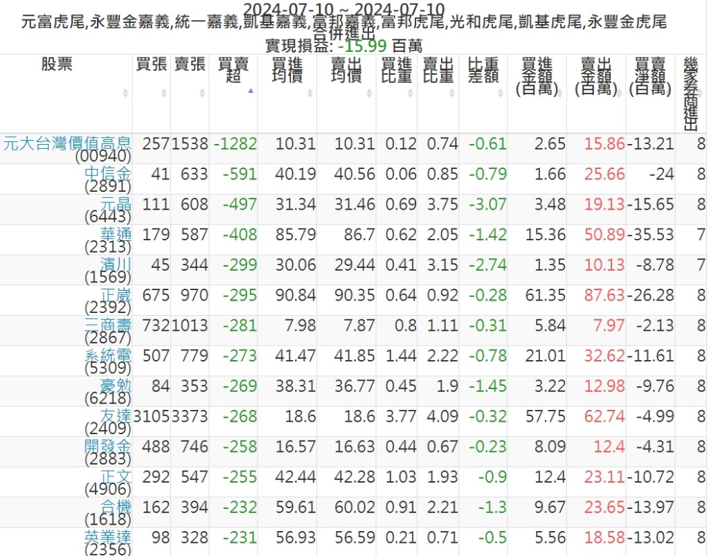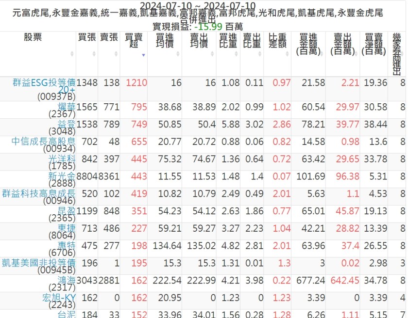 2024-0710主力買賣超個股 2024-07-10 股狗網小編 籌碼面每日資訊 發表留言 可參考下文 『如何查詢當沖、隔日沖分公司券商買賣』 主力當沖券商: 『元富虎尾』,『永豐金嘉義』,『統一嘉義』,『凱基嘉義』,『富邦嘉義』,『富邦虎尾』,『光和虎尾』,『凱基虎尾』,『永豐金虎尾』。 『當沖標的』 『買超股票』 『賣超股票』 免責宣言 本網站文章所提供資訊僅供參考,並無任何推介買賣之意,投資人應自行承擔交易風險。 分享此文: 分享到 X(在新視窗中開啟) X 分享到 Facebook(在新視窗中開啟) Facebook 喜歡 正在載入...