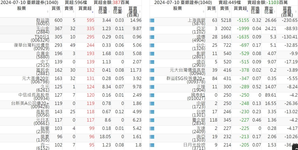 2024-0710關鍵券商買賣超 2024-07-10 股狗網小編 籌碼面每日資訊 發表留言 關鍵券商買賣超: 臺銀證券(1040): 台灣摩根士丹利(1470): 凱基台北(9268): 凱基信義(9216): 元大土城永寧(9875): 康和永和(845B) : 富邦建國(9658): 免責宣言 本網站文章所提供資訊僅供參考,並無任何推介買賣之意,投資人應自行承擔交易風險。 分享此文: 分享到 X(在新視窗中開啟) X 分享到 Facebook(在新視窗中開啟) Facebook 喜歡 正在載入...
