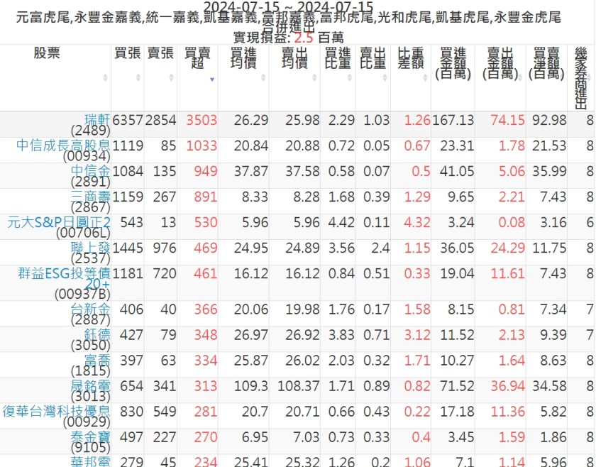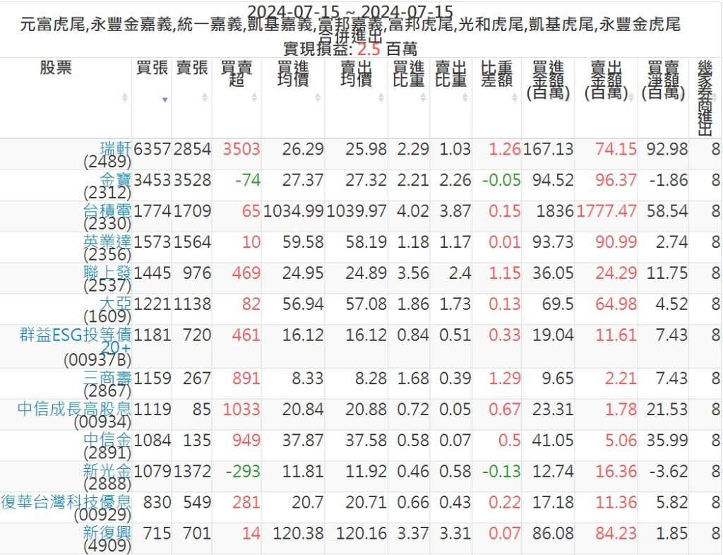 2024-0715主力買賣超個股 2024-07-15 股狗網小編 籌碼面每日資訊 發表留言 可參考下文 『如何查詢當沖、隔日沖分公司券商買賣』 主力當沖券商: 『元富虎尾』,『永豐金嘉義』,『統一嘉義』,『凱基嘉義』,『富邦嘉義』,『富邦虎尾』,『光和虎尾』,『凱基虎尾』,『永豐金虎尾』。 『當沖標的』 『買超股票』 『賣超股票』 免責宣言 本網站文章所提供資訊僅供參考,並無任何推介買賣之意,投資人應自行承擔交易風險。 分享此文: 分享到 X(在新視窗中開啟) X 分享到 Facebook(在新視窗中開啟) Facebook 喜歡 正在載入...