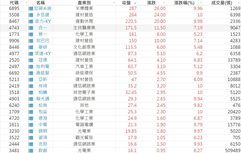 2024-0717日新高爆量上漲股 2024-07-17 股狗網小編 選股條件 發表留言 利用股狗選股的選股條件可以【挑選突破20日新高,爆量上漲起漲點股票】 1.股狗選股 https://www.stockdog.com.tw 2.選股條件: a.收盤價創20日新高 b.當日漲幅 > 2% C.成交量大於5日均量2倍 免責宣言 本網站文章所提供資訊僅供參考,並無任何推介買賣之意,投資人應自行承擔交易風險。 分享此文: 分享到 X(在新視窗中開啟) X 分享到 Facebook(在新視窗中開啟) Facebook 喜歡 正在載入...
