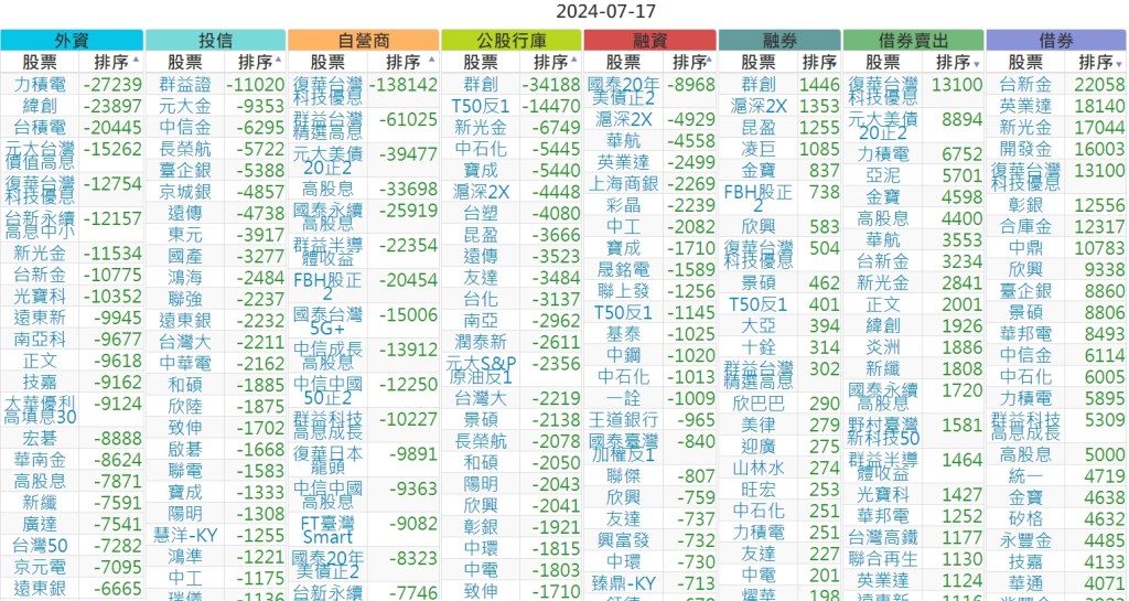2024-0717市【外資、投信】買賣超個股 2024-07-18 股狗網小編 投資誌-大盤 發表留言 上市:【外資、投信】買超(依金額) (單位:百萬) 上市:【外資、投信】賣超(依金額) (單位:百萬) 上市:【外資、投信】買超(依張數) (單位:張數) 上市:【外資、投信】賣超(依張數) (單位:張數) 免責宣言 本網站文章所提供資訊僅供參考,並無任何推介買賣之意,投資人應自行承擔交易風險。 分享此文: 分享到 X(在新視窗中開啟) X 分享到 Facebook(在新視窗中開啟) Facebook 喜歡 正在載入...