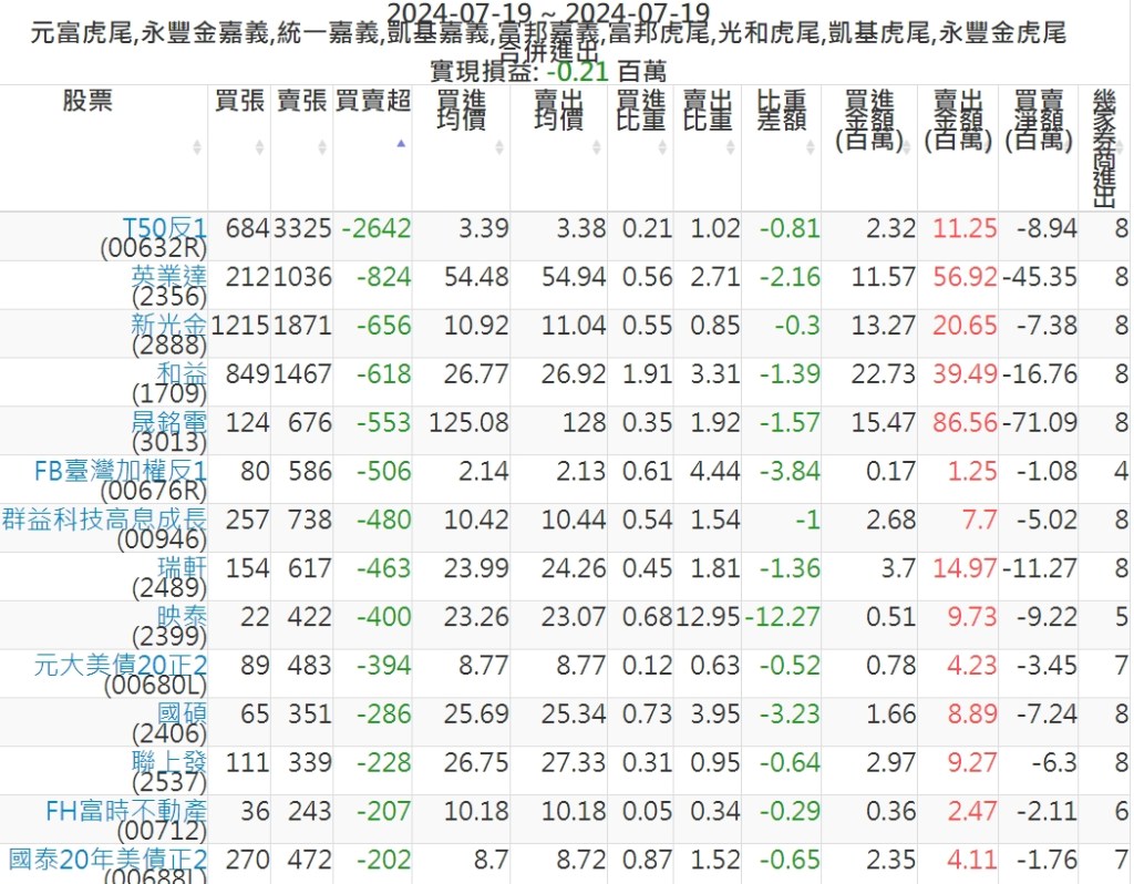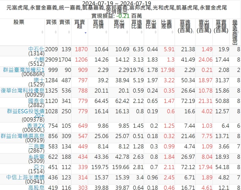 2024-0719主力買賣超個股 2024-07-19 股狗網小編 籌碼面每日資訊 發表留言 可參考下文 『如何查詢當沖、隔日沖分公司券商買賣』 主力當沖券商: 『元富虎尾』,『永豐金嘉義』,『統一嘉義』,『凱基嘉義』,『富邦嘉義』,『富邦虎尾』,『光和虎尾』,『凱基虎尾』,『永豐金虎尾』。 『當沖標的』 『買超股票』 『賣超股票』 免責宣言 本網站文章所提供資訊僅供參考,並無任何推介買賣之意,投資人應自行承擔交易風險。 分享此文: 分享到 X(在新視窗中開啟) X 分享到 Facebook(在新視窗中開啟) Facebook 喜歡 正在載入...