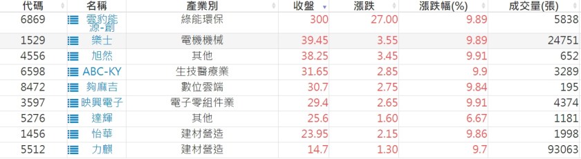 2024-0719日新高爆量上漲股 2024-07-19 股狗網小編 選股條件 發表留言 利用股狗選股的選股條件可以【挑選突破20日新高,爆量上漲起漲點股票】 1.股狗選股 https://www.stockdog.com.tw 2.選股條件: a.收盤價創20日新高 b.當日漲幅 > 2% C.成交量大於5日均量2倍 免責宣言 本網站文章所提供資訊僅供參考,並無任何推介買賣之意,投資人應自行承擔交易風險。 分享此文: 分享到 X(在新視窗中開啟) X 分享到 Facebook(在新視窗中開啟) Facebook 喜歡 正在載入...