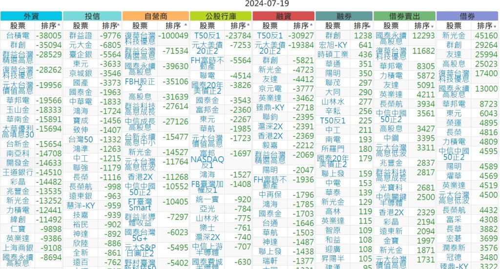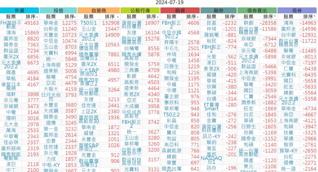 2024-0719市【外資、投信】買賣超個股 2024-07-20 股狗網小編 投資誌-大盤 發表留言 上市:【外資、投信】買超(依金額) (單位:百萬) 上市:【外資、投信】賣超(依金額) (單位:百萬) 上市:【外資、投信】買超(依張數) (單位:張數) 上市:【外資、投信】賣超(依張數) (單位:張數) 免責宣言 本網站文章所提供資訊僅供參考,並無任何推介買賣之意,投資人應自行承擔交易風險。 分享此文: 分享到 X(在新視窗中開啟) X 分享到 Facebook(在新視窗中開啟) Facebook 喜歡 正在載入...