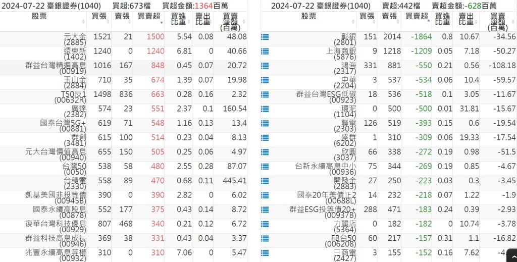 2024-0722關鍵券商買賣超 2024-07-22 股狗網小編 籌碼面每日資訊 發表留言 關鍵券商買賣超: 臺銀證券(1040): 台灣摩根士丹利(1470): 凱基台北(9268): 凱基信義(9216): 元大土城永寧(9875): 康和永和(845B) : 富邦建國(9658): 免責宣言 本網站文章所提供資訊僅供參考,並無任何推介買賣之意,投資人應自行承擔交易風險。 分享此文: 分享到 X(在新視窗中開啟) X 分享到 Facebook(在新視窗中開啟) Facebook 喜歡 正在載入...