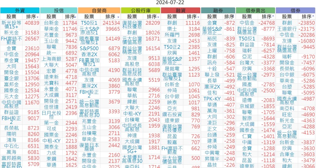 2024-0722市【外資、投信】買賣超個股 2024-07-23 股狗網小編 投資誌-大盤 發表留言 上市:【外資、投信】買超(依金額) (單位:百萬) 上市:【外資、投信】賣超(依金額) (單位:百萬) 上市:【外資、投信】買超(依張數) (單位:張數) 上市:【外資、投信】賣超(依張數) (單位:張數) 免責宣言 本網站文章所提供資訊僅供參考,並無任何推介買賣之意,投資人應自行承擔交易風險。 分享此文: 分享到 X(在新視窗中開啟) X 分享到 Facebook(在新視窗中開啟) Facebook 喜歡 正在載入...