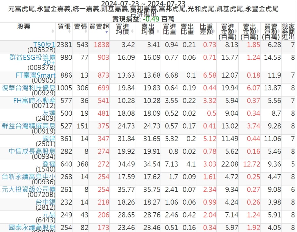 2024-0723主力買賣超個股 2024-07-23 股狗網小編 籌碼面每日資訊 發表留言 可參考下文 『如何查詢當沖、隔日沖分公司券商買賣』 主力當沖券商: 『元富虎尾』,『永豐金嘉義』,『統一嘉義』,『凱基嘉義』,『富邦嘉義』,『富邦虎尾』,『光和虎尾』,『凱基虎尾』,『永豐金虎尾』。 『當沖標的』 『買超股票』 『賣超股票』 免責宣言 本網站文章所提供資訊僅供參考,並無任何推介買賣之意,投資人應自行承擔交易風險。 分享此文: 分享到 X(在新視窗中開啟) X 分享到 Facebook(在新視窗中開啟) Facebook 喜歡 正在載入...