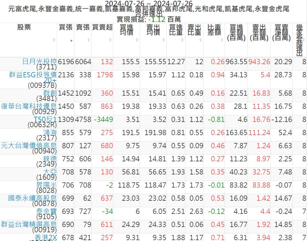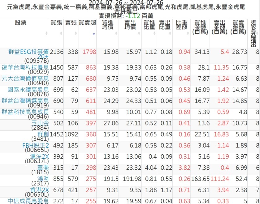 2024-0726主力買賣超個股 2024-07-26 股狗網小編 籌碼面每日資訊 發表留言 可參考下文 『如何查詢當沖、隔日沖分公司券商買賣』 主力當沖券商: 『元富虎尾』,『永豐金嘉義』,『統一嘉義』,『凱基嘉義』,『富邦嘉義』,『富邦虎尾』,『光和虎尾』,『凱基虎尾』,『永豐金虎尾』。 『當沖標的』 『買超股票』 『賣超股票』 免責宣言 本網站文章所提供資訊僅供參考,並無任何推介買賣之意,投資人應自行承擔交易風險。 分享此文: 分享到 X(在新視窗中開啟) X 分享到 Facebook(在新視窗中開啟) Facebook 喜歡 正在載入...
