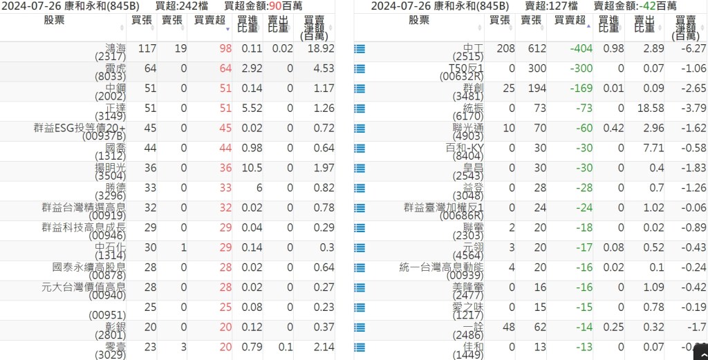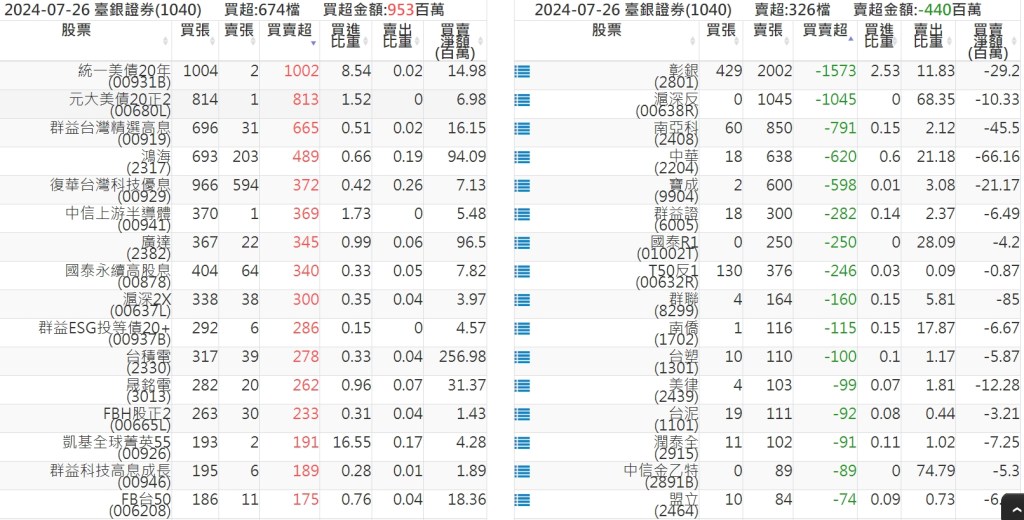 2024-0726關鍵券商買賣超 2024-07-26 股狗網小編 籌碼面每日資訊 發表留言 關鍵券商買賣超: 臺銀證券(1040): 台灣摩根士丹利(1470): 凱基台北(9268): 凱基信義(9216): 元大土城永寧(9875): 康和永和(845B) : 富邦建國(9658): 免責宣言 本網站文章所提供資訊僅供參考,並無任何推介買賣之意,投資人應自行承擔交易風險。 分享此文: 分享到 X(在新視窗中開啟) X 分享到 Facebook(在新視窗中開啟) Facebook 喜歡 正在載入...