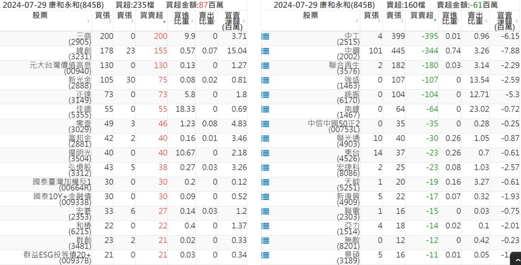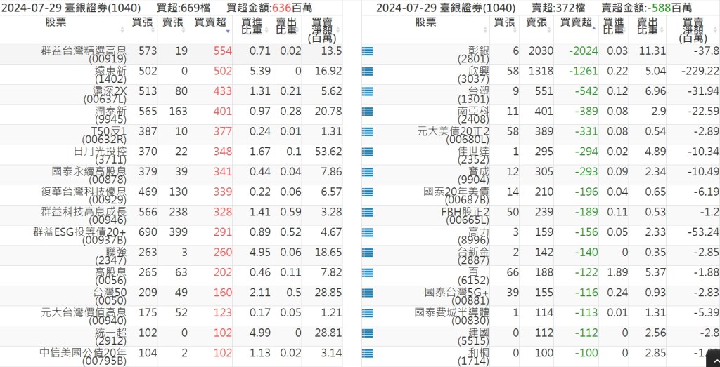 2024-0729關鍵券商買賣超 2024-07-29 股狗網小編 籌碼面每日資訊 發表留言 關鍵券商買賣超: 臺銀證券(1040): 台灣摩根士丹利(1470): 凱基台北(9268): 凱基信義(9216): 元大土城永寧(9875): 康和永和(845B) : 富邦建國(9658): 免責宣言 本網站文章所提供資訊僅供參考,並無任何推介買賣之意,投資人應自行承擔交易風險。 分享此文: 分享到 X(在新視窗中開啟) X 分享到 Facebook(在新視窗中開啟) Facebook 喜歡 正在載入...