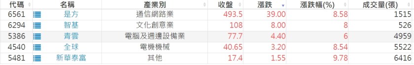 2024-0807日新高爆量上漲股 2024-08-07 股狗網小編 選股條件 發表留言 利用股狗選股的選股條件可以【挑選突破20日新高,爆量上漲起漲點股票】 1.股狗選股 https://www.stockdog.com.tw 2.選股條件: a.收盤價創20日新高 b.當日漲幅 > 2% C.成交量大於5日均量2倍 免責宣言 本網站文章所提供資訊僅供參考,並無任何推介買賣之意,投資人應自行承擔交易風險。 分享此文: 分享到 X(在新視窗中開啟) X 分享到 Facebook(在新視窗中開啟) Facebook 喜歡 正在載入...