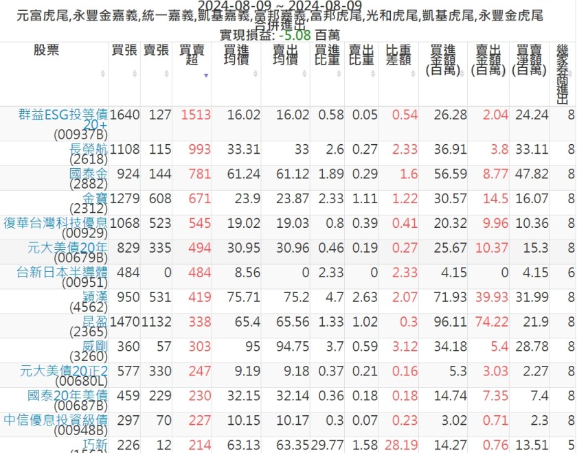 2024-0809主力買賣超個股 2024-08-10 股狗網小編 籌碼面每日資訊 發表留言 可參考下文 『如何查詢當沖、隔日沖分公司券商買賣』 主力當沖券商: 『元富虎尾』,『永豐金嘉義』,『統一嘉義』,『凱基嘉義』,『富邦嘉義』,『富邦虎尾』,『光和虎尾』,『凱基虎尾』,『永豐金虎尾』。 『當沖標的』 『買超股票』 『賣超股票』 免責宣言 本網站文章所提供資訊僅供參考,並無任何推介買賣之意,投資人應自行承擔交易風險。 分享此文: 按一下即可分享至 X(在新視窗中開啟) X 按一下以分享至 Facebook(在新視窗中開啟) Facebook 喜歡 正在載入...