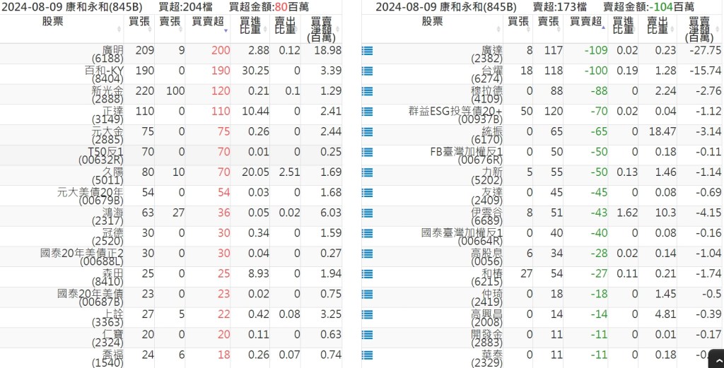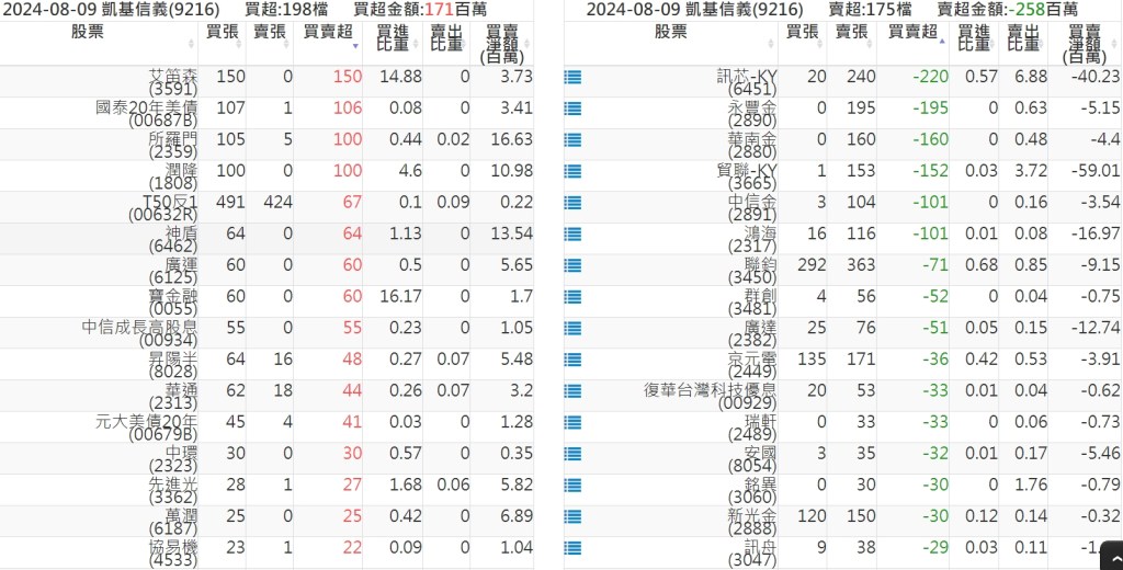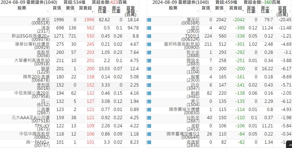 2024-0809關鍵券商買賣超 2024-08-10 股狗網小編 籌碼面每日資訊 發表留言 關鍵券商買賣超: 臺銀證券(1040): 台灣摩根士丹利(1470): 凱基台北(9268): 凱基信義(9216): 元大土城永寧(9875): 康和永和(845B) : 富邦建國(9658): 免責宣言 本網站文章所提供資訊僅供參考,並無任何推介買賣之意,投資人應自行承擔交易風險。 分享此文: 按一下即可分享至 X(在新視窗中開啟) X 按一下以分享至 Facebook(在新視窗中開啟) Facebook 喜歡 正在載入...