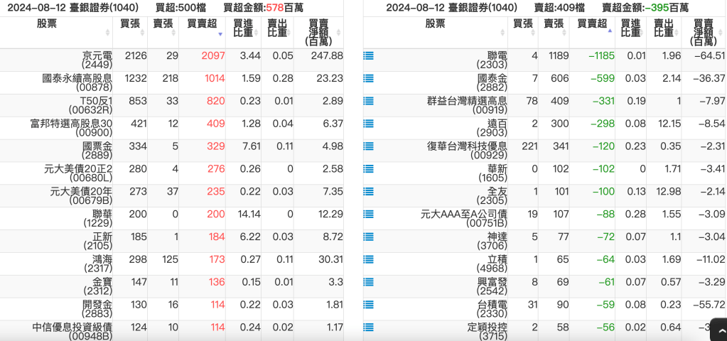 2024-0812關鍵券商買賣超 2024-08-12 股狗網小編 籌碼面每日資訊 發表留言 關鍵券商買賣超: 臺銀證券(1040): 台灣摩根士丹利(1470): 凱基台北(9268): 凱基信義(9216): 元大土城永寧(9875): 康和永和(845B) : 富邦建國(9658): 免責宣言 本網站文章所提供資訊僅供參考,並無任何推介買賣之意,投資人應自行承擔交易風險。 分享此文: 按一下即可分享至 X(在新視窗中開啟) X 按一下以分享至 Facebook(在新視窗中開啟) Facebook 喜歡 正在載入...