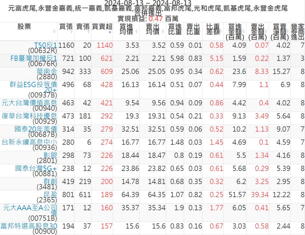 2024-0813主力買賣超個股 2024-08-13 股狗網小編 籌碼面每日資訊 發表留言 可參考下文 『如何查詢當沖、隔日沖分公司券商買賣』 主力當沖券商: 『元富虎尾』,『永豐金嘉義』,『統一嘉義』,『凱基嘉義』,『富邦嘉義』,『富邦虎尾』,『光和虎尾』,『凱基虎尾』,『永豐金虎尾』。 『當沖標的』 『買超股票』 『賣超股票』 免責宣言 本網站文章所提供資訊僅供參考,並無任何推介買賣之意,投資人應自行承擔交易風險。 分享此文: 按一下即可分享至 X(在新視窗中開啟) X 按一下以分享至 Facebook(在新視窗中開啟) Facebook 喜歡 正在載入...