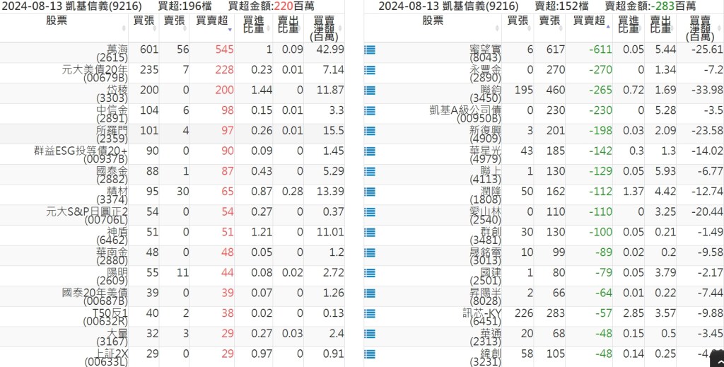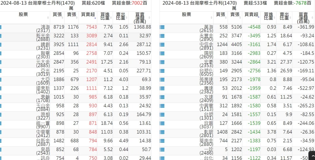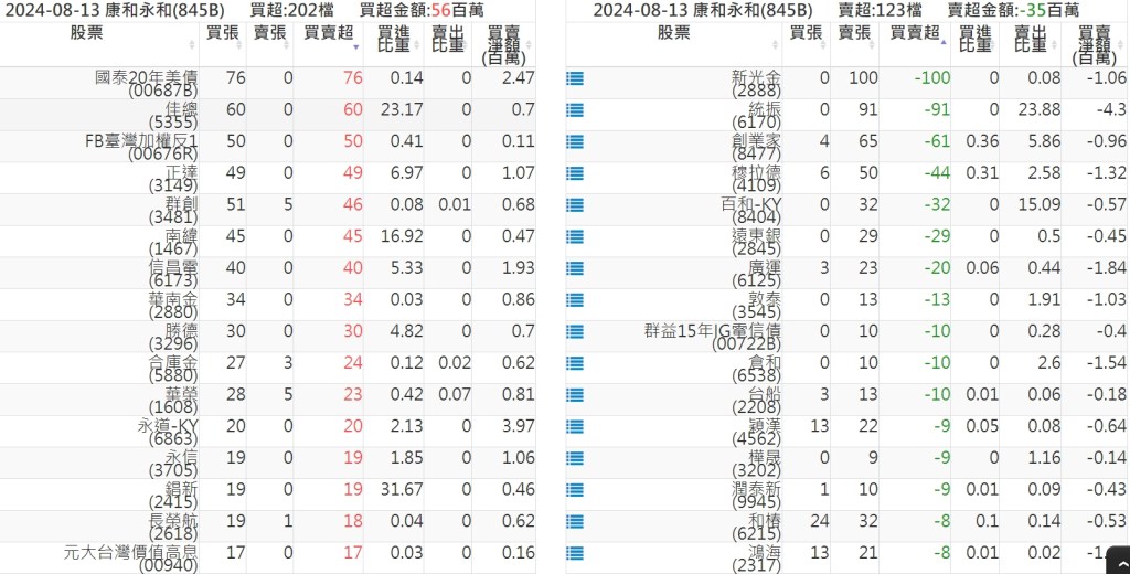 2024-0813關鍵券商買賣超 2024-08-13 股狗網小編 籌碼面每日資訊 發表留言 關鍵券商買賣超: 臺銀證券(1040): 台灣摩根士丹利(1470): 凱基台北(9268): 凱基信義(9216): 元大土城永寧(9875): 康和永和(845B) : 富邦建國(9658): 免責宣言 本網站文章所提供資訊僅供參考,並無任何推介買賣之意,投資人應自行承擔交易風險。 分享此文: 按一下即可分享至 X(在新視窗中開啟) X 按一下以分享至 Facebook(在新視窗中開啟) Facebook 喜歡 正在載入...