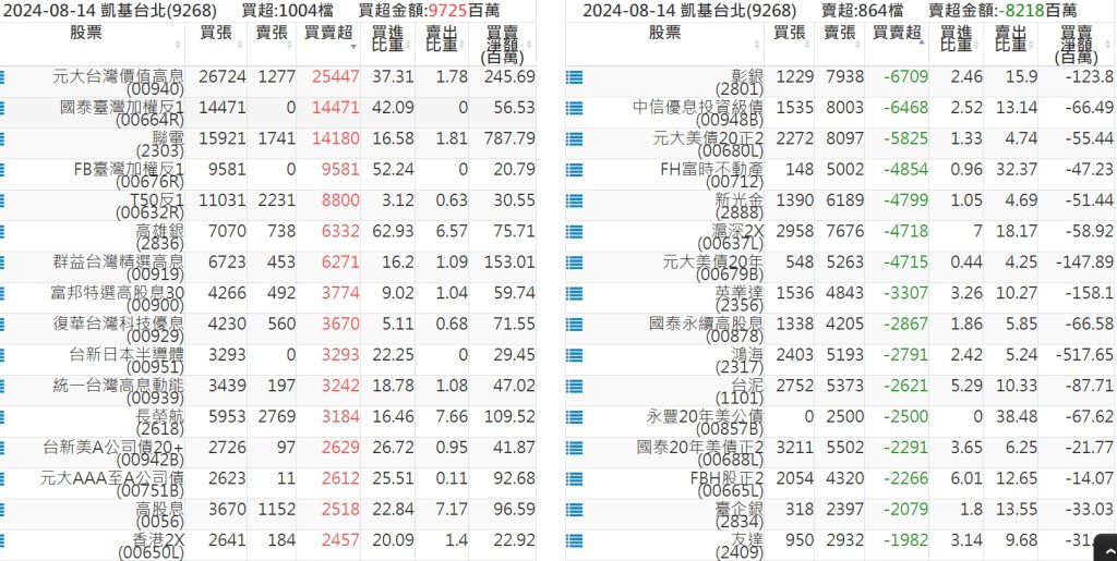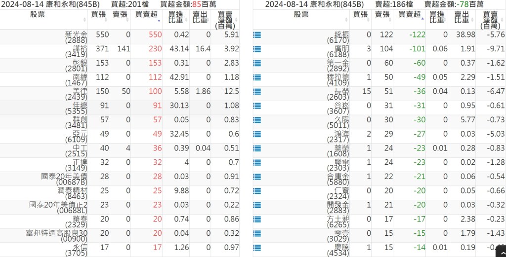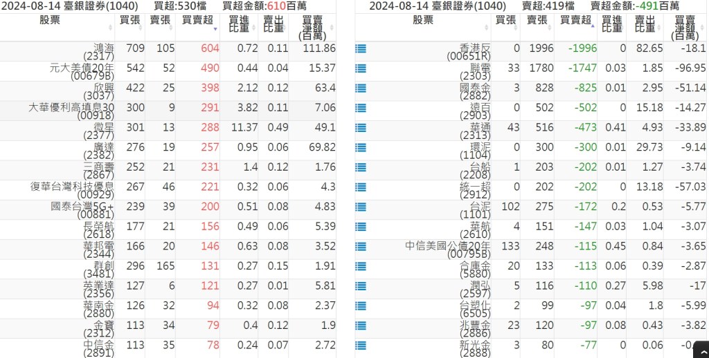 2024-0814關鍵券商買賣超 2024-08-14 股狗網小編 籌碼面每日資訊 發表留言 關鍵券商買賣超: 臺銀證券(1040): 台灣摩根士丹利(1470): 凱基台北(9268): 凱基信義(9216): 元大土城永寧(9875): 康和永和(845B) : 富邦建國(9658): 免責宣言 本網站文章所提供資訊僅供參考,並無任何推介買賣之意,投資人應自行承擔交易風險。 分享此文: 分享到 X(在新視窗中開啟) X 分享到 Facebook(在新視窗中開啟) Facebook 喜歡 正在載入...