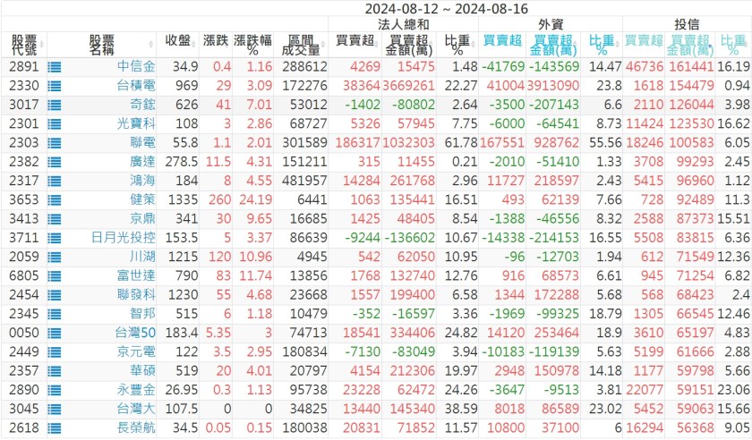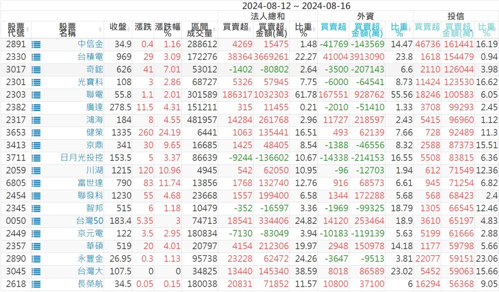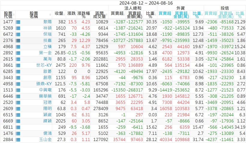 2024/08/12~2024/08/16近5日【投信】買賣超個股 2024-08-18 股狗網小編 投資誌-大盤 發表留言 【上市投信買超個股】(以金額排行,單位:萬) 【上市投信賣超個股】(以金額排行,單位:萬) 【上櫃投信買超個股】(以金額排行,單位:萬) 【上櫃投信賣超個股】(以金額排行,單位:萬) 免責宣言 本網站文章所提供資訊僅供參考,並無任何推介買賣之意,投資人應自行承擔交易風險。 分享此文: 分享到 X(在新視窗中開啟) X 分享到 Facebook(在新視窗中開啟) Facebook 喜歡 正在載入...