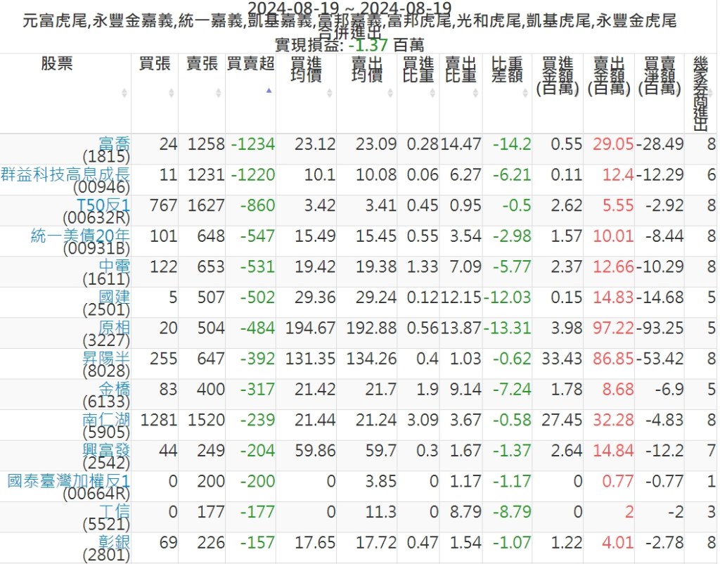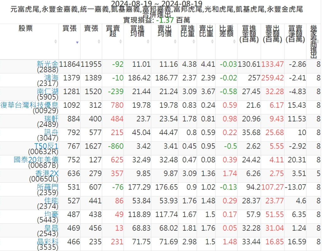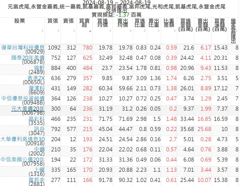 2024-0819主力買賣超個股 2024-08-19 股狗網小編 籌碼面每日資訊 發表留言 可參考下文 『如何查詢當沖、隔日沖分公司券商買賣』 主力當沖券商: 『元富虎尾』,『永豐金嘉義』,『統一嘉義』,『凱基嘉義』,『富邦嘉義』,『富邦虎尾』,『光和虎尾』,『凱基虎尾』,『永豐金虎尾』。 『當沖標的』 『買超股票』 『賣超股票』 免責宣言 本網站文章所提供資訊僅供參考,並無任何推介買賣之意,投資人應自行承擔交易風險。 分享此文: 分享到 X(在新視窗中開啟) X 分享到 Facebook(在新視窗中開啟) Facebook 喜歡 正在載入...