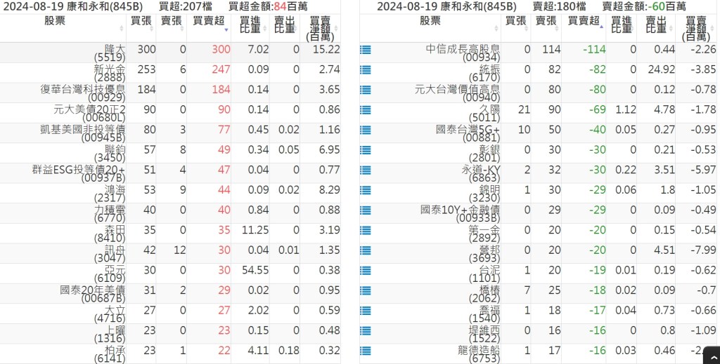 2024-0819關鍵券商買賣超 2024-08-19 股狗網小編 籌碼面每日資訊 發表留言 關鍵券商買賣超: 臺銀證券(1040): 台灣摩根士丹利(1470): 凱基台北(9268): 凱基信義(9216): 元大土城永寧(9875): 康和永和(845B) : 富邦建國(9658): 免責宣言 本網站文章所提供資訊僅供參考,並無任何推介買賣之意,投資人應自行承擔交易風險。 分享此文: 分享到 X(在新視窗中開啟) X 分享到 Facebook(在新視窗中開啟) Facebook 喜歡 正在載入...