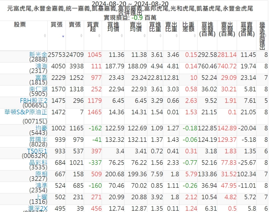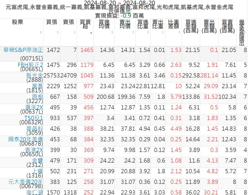 2024-0820主力買賣超個股 2024-08-20 股狗網小編 籌碼面每日資訊 發表留言 可參考下文 『如何查詢當沖、隔日沖分公司券商買賣』 主力當沖券商: 『元富虎尾』,『永豐金嘉義』,『統一嘉義』,『凱基嘉義』,『富邦嘉義』,『富邦虎尾』,『光和虎尾』,『凱基虎尾』,『永豐金虎尾』。 『當沖標的』 『買超股票』 『賣超股票』 免責宣言 本網站文章所提供資訊僅供參考,並無任何推介買賣之意,投資人應自行承擔交易風險。 分享此文: 分享到 X(在新視窗中開啟) X 分享到 Facebook(在新視窗中開啟) Facebook 喜歡 正在載入...