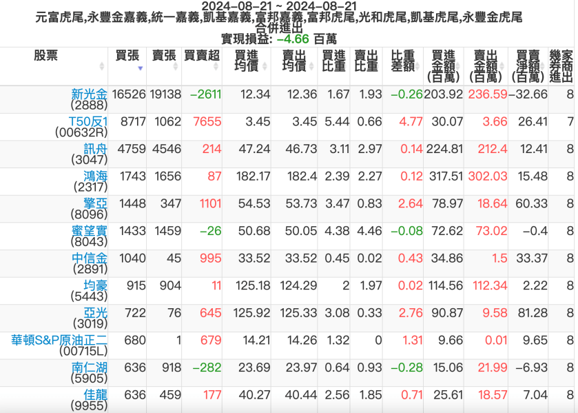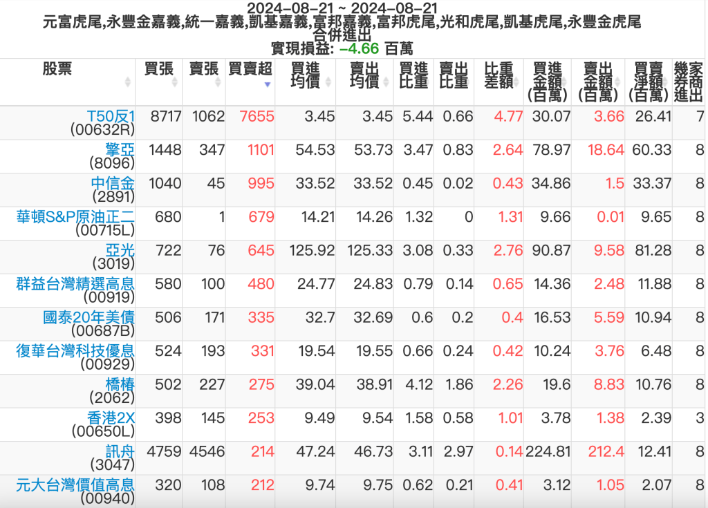 2024-0821主力買賣超個股 2024-08-21 股狗網小編 籌碼面每日資訊 發表留言 可參考下文 『如何查詢當沖、隔日沖分公司券商買賣』 主力當沖券商: 『元富虎尾』,『永豐金嘉義』,『統一嘉義』,『凱基嘉義』,『富邦嘉義』,『富邦虎尾』,『光和虎尾』,『凱基虎尾』,『永豐金虎尾』。 『當沖標的』 『買超股票』 『賣超股票』 免責宣言 本網站文章所提供資訊僅供參考,並無任何推介買賣之意,投資人應自行承擔交易風險。 分享此文: 分享到 X(在新視窗中開啟) X 分享到 Facebook(在新視窗中開啟) Facebook 喜歡 正在載入...
