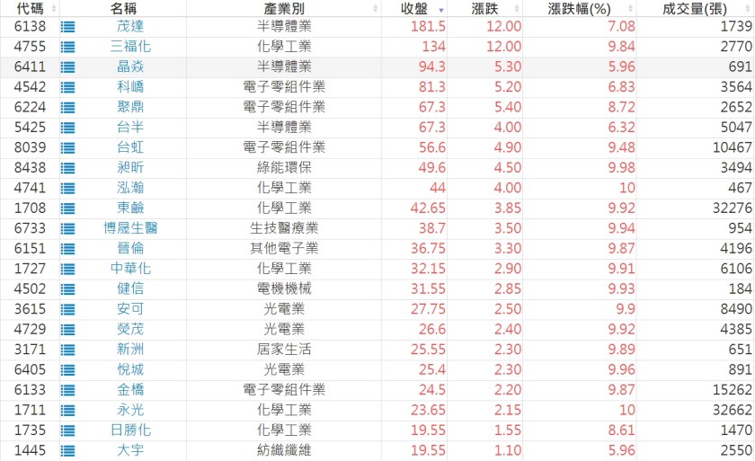 2024-0822日新高爆量上漲股 2024-08-22 股狗網小編 選股條件 發表留言 利用股狗選股的選股條件可以【挑選突破20日新高,爆量上漲起漲點股票】 1.股狗選股 https://www.stockdog.com.tw 2.選股條件: a.收盤價創20日新高 b.當日漲幅 > 2% C.成交量大於5日均量2倍 免責宣言 本網站文章所提供資訊僅供參考,並無任何推介買賣之意,投資人應自行承擔交易風險。 分享此文: 按一下即可分享至 X(在新視窗中開啟) X 按一下以分享至 Facebook(在新視窗中開啟) Facebook 喜歡 正在載入...