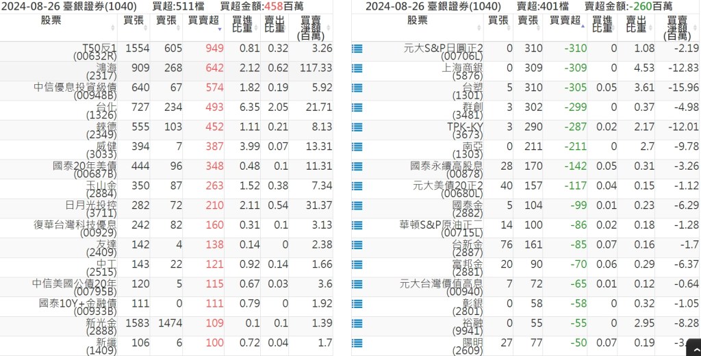 2024-0826關鍵券商買賣超 2024-08-26 股狗網小編 籌碼面每日資訊 發表留言 關鍵券商買賣超: 臺銀證券(1040): 台灣摩根士丹利(1470): 凱基台北(9268): 凱基信義(9216): 元大土城永寧(9875): 康和永和(845B) : 富邦建國(9658): 免責宣言 本網站文章所提供資訊僅供參考,並無任何推介買賣之意,投資人應自行承擔交易風險。 分享此文: 按一下即可分享至 X(在新視窗中開啟) X 按一下以分享至 Facebook(在新視窗中開啟) Facebook 喜歡 正在載入...