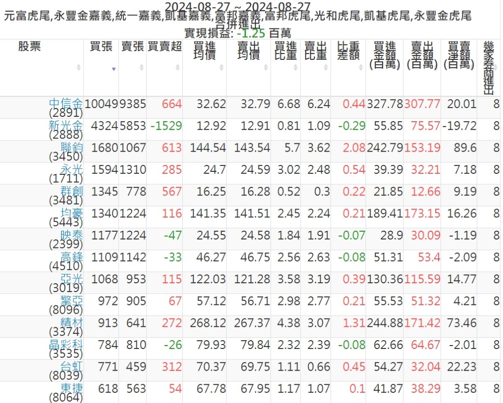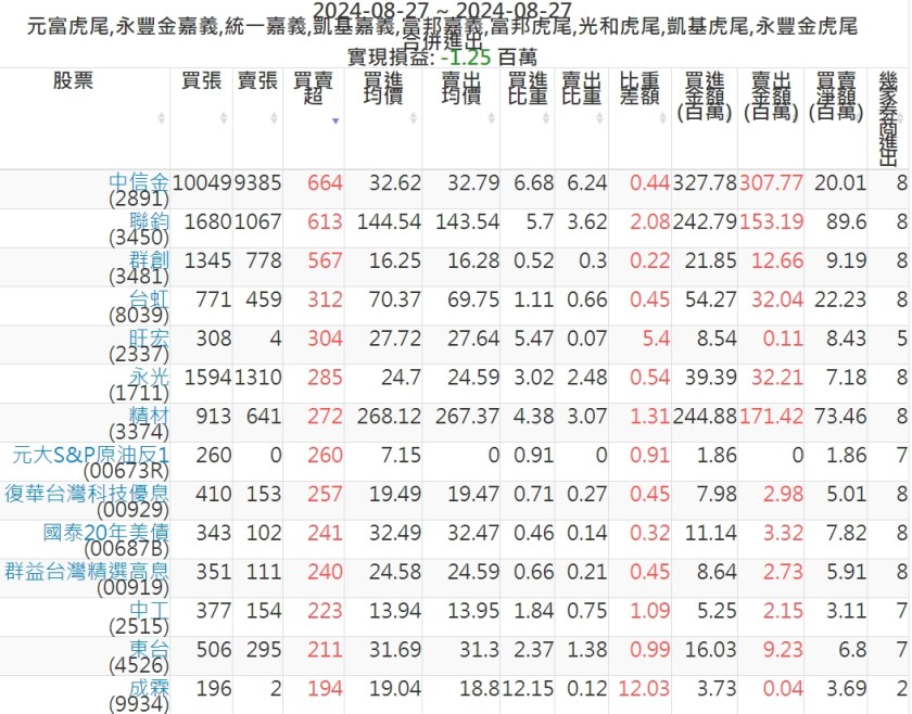 2024-0827主力買賣超個股 2024-08-27 股狗網小編 籌碼面每日資訊 發表留言 可參考下文 『如何查詢當沖、隔日沖分公司券商買賣』 主力當沖券商: 『元富虎尾』,『永豐金嘉義』,『統一嘉義』,『凱基嘉義』,『富邦嘉義』,『富邦虎尾』,『光和虎尾』,『凱基虎尾』,『永豐金虎尾』。 『當沖標的』 『買超股票』 『賣超股票』 免責宣言 本網站文章所提供資訊僅供參考,並無任何推介買賣之意,投資人應自行承擔交易風險。 分享此文: 按一下即可分享至 X(在新視窗中開啟) X 按一下以分享至 Facebook(在新視窗中開啟) Facebook 喜歡 正在載入...