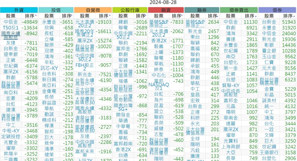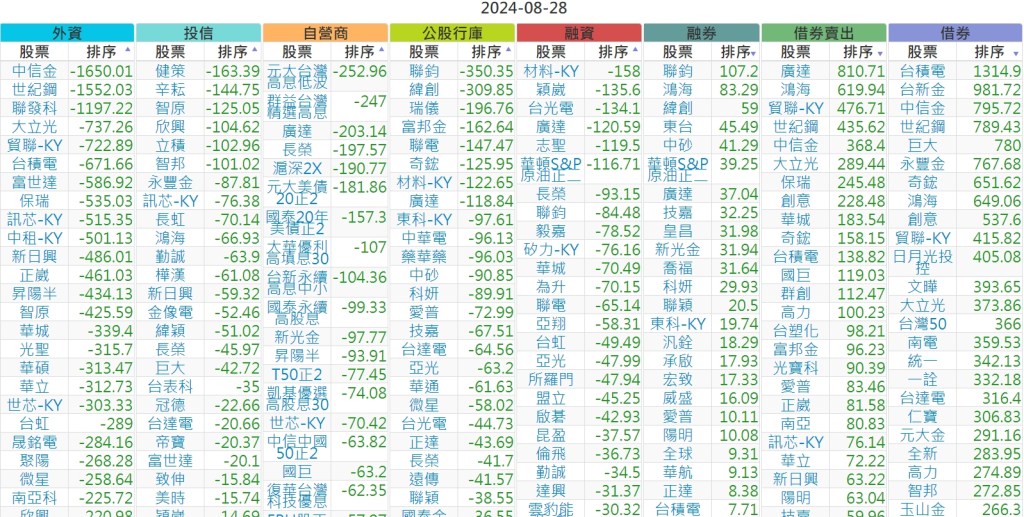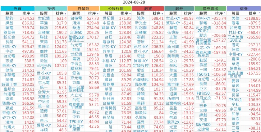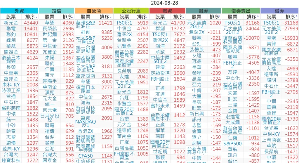 2024-0828【外資、投信】買賣超個股 2024-08-29 股狗網小編 投資誌-大盤 發表留言 上市:【外資、投信】買超(依金額) (單位:百萬) 上市:【外資、投信】賣超(依金額) (單位:百萬) 上市:【外資、投信】買超(依張數) (單位:張數) 上市:【外資、投信】賣超(依張數) (單位:張數) 免責宣言 本網站文章所提供資訊僅供參考,並無任何推介買賣之意,投資人應自行承擔交易風險。 分享此文: 按一下即可分享至 X(在新視窗中開啟) X 按一下以分享至 Facebook(在新視窗中開啟) Facebook 喜歡 正在載入...