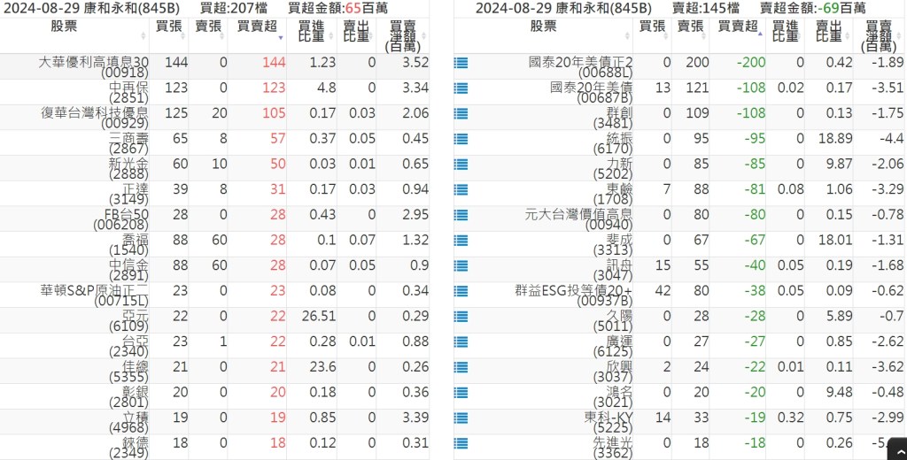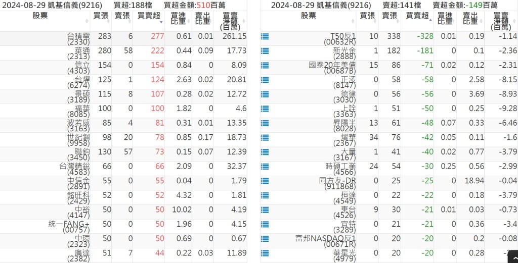 2024-0829關鍵券商買賣超 2024-08-29 股狗網小編 籌碼面每日資訊 發表留言 關鍵券商買賣超: 臺銀證券(1040): 台灣摩根士丹利(1470): 凱基台北(9268): 凱基信義(9216): 元大土城永寧(9875): 康和永和(845B) : 富邦建國(9658): 免責宣言 本網站文章所提供資訊僅供參考,並無任何推介買賣之意,投資人應自行承擔交易風險。 分享此文: 按一下即可分享至 X(在新視窗中開啟) X 按一下以分享至 Facebook(在新視窗中開啟) Facebook 喜歡 正在載入...