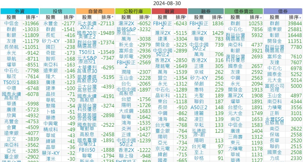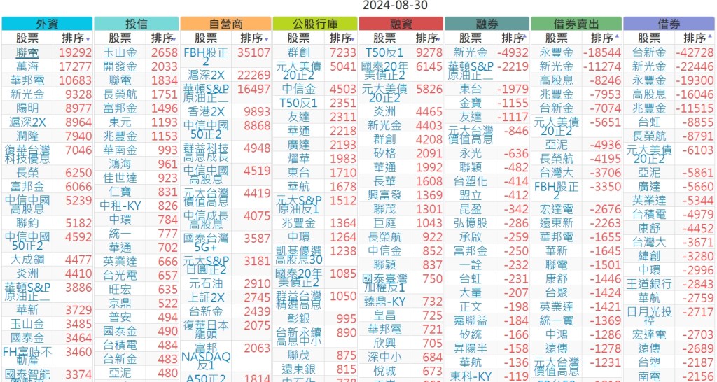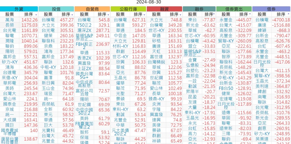 2024-0830【外資、投信】買賣超個股 2024-08-31 股狗網小編 投資誌-大盤 發表留言 上市:【外資、投信】買超(依金額) (單位:百萬) 上市:【外資、投信】賣超(依金額) (單位:百萬) 上市:【外資、投信】買超(依張數) (單位:張數) 上市:【外資、投信】賣超(依張數) (單位:張數) 免責宣言 本網站文章所提供資訊僅供參考,並無任何推介買賣之意,投資人應自行承擔交易風險。 分享此文: 分享到 X(在新視窗中開啟) X 分享到 Facebook(在新視窗中開啟) Facebook 喜歡 正在載入...