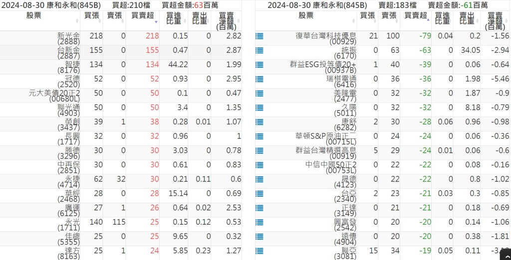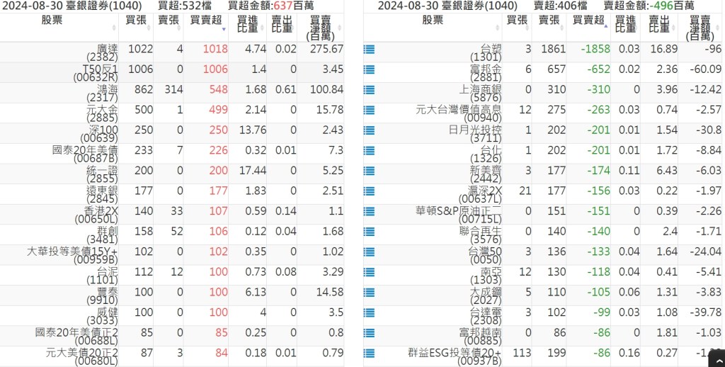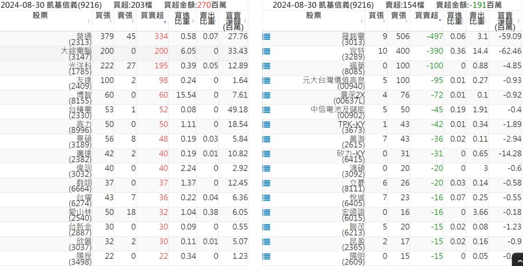 2024-0830關鍵券商買賣超 2024-08-31 股狗網小編 籌碼面每日資訊 發表留言 關鍵券商買賣超: 臺銀證券(1040): 台灣摩根士丹利(1470): 凱基台北(9268): 凱基信義(9216): 元大土城永寧(9875): 康和永和(845B) : 富邦建國(9658): 免責宣言 本網站文章所提供資訊僅供參考,並無任何推介買賣之意,投資人應自行承擔交易風險。 分享此文: 分享到 X(在新視窗中開啟) X 分享到 Facebook(在新視窗中開啟) Facebook 喜歡 正在載入...