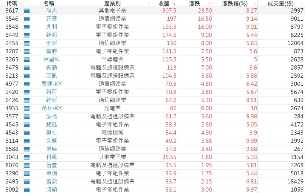 2024-0902日新高爆量上漲股 2024-09-03 股狗網小編 選股條件 發表留言 利用股狗選股的選股條件可以【挑選突破20日新高,爆量上漲起漲點股票】 1.股狗選股 https://www.stockdog.com.tw 2.選股條件: a.收盤價創20日新高 b.當日漲幅 > 2% C.成交量大於5日均量2倍 免責宣言 本網站文章所提供資訊僅供參考,並無任何推介買賣之意,投資人應自行承擔交易風險。 分享此文: 分享到 X(在新視窗中開啟) X 分享到 Facebook(在新視窗中開啟) Facebook 喜歡 正在載入...