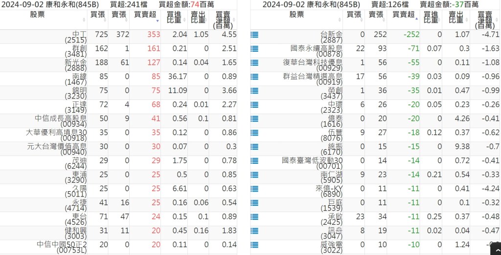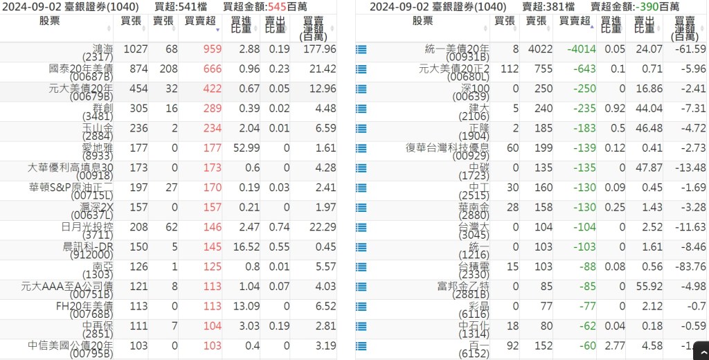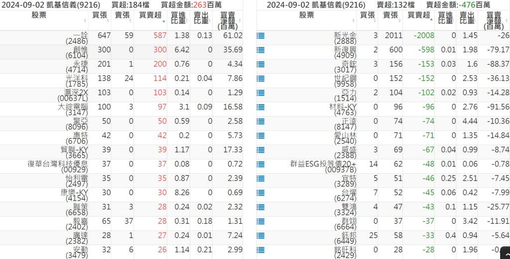 2024-0902關鍵券商買賣超 2024-09-03 股狗網小編 籌碼面每日資訊 發表留言 關鍵券商買賣超: 臺銀證券(1040): 台灣摩根士丹利(1470): 凱基台北(9268): 凱基信義(9216): 元大土城永寧(9875): 康和永和(845B) : 富邦建國(9658): 免責宣言 本網站文章所提供資訊僅供參考,並無任何推介買賣之意,投資人應自行承擔交易風險。 分享此文: 分享到 X(在新視窗中開啟) X 分享到 Facebook(在新視窗中開啟) Facebook 喜歡 正在載入...