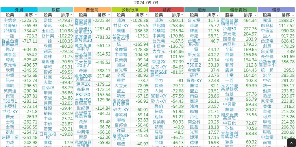 2024-0903【外資、投信】買賣超個股 2024-09-04 股狗網小編 投資誌-大盤 發表留言 上市:【外資、投信】買超(依金額) (單位:百萬) 上市:【外資、投信】賣超(依金額) (單位:百萬) 上市:【外資、投信】買超(依張數) (單位:張數) 上市:【外資、投信】賣超(依張數) (單位:張數) 免責宣言 本網站文章所提供資訊僅供參考,並無任何推介買賣之意,投資人應自行承擔交易風險。 分享此文: 分享到 X(在新視窗中開啟) X 分享到 Facebook(在新視窗中開啟) Facebook 喜歡 正在載入...