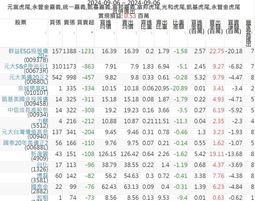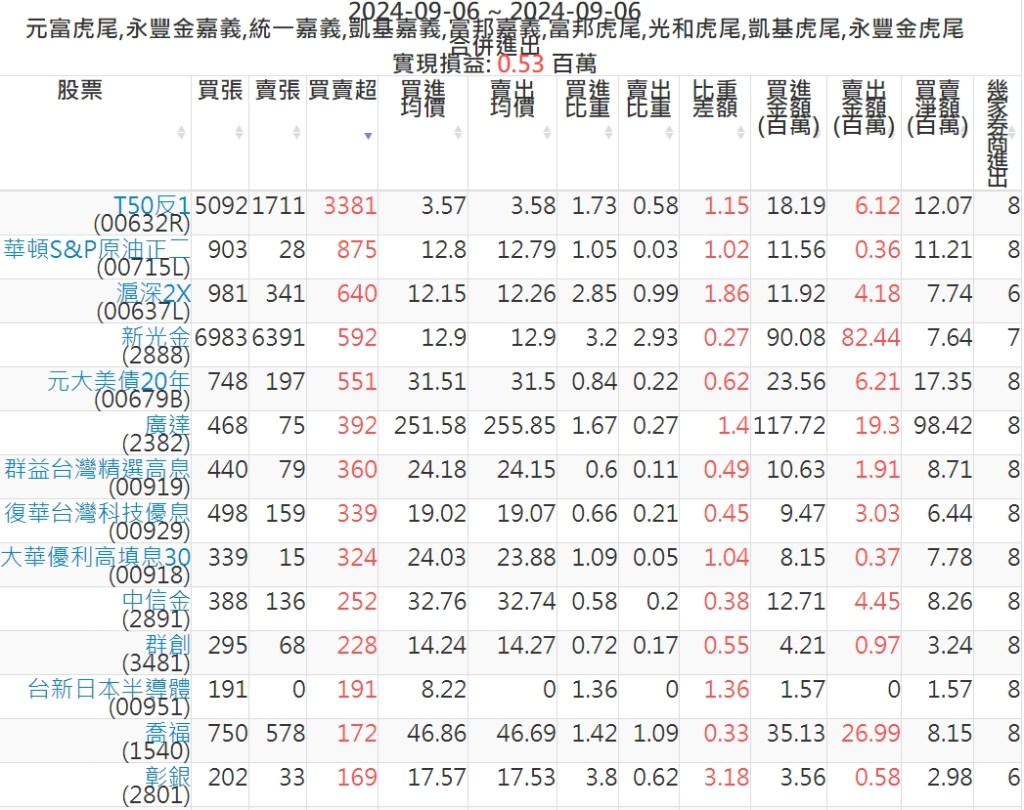 2024-0906主力買賣超個股 2024-09-06 股狗網小編 籌碼面每日資訊 發表留言 可參考下文 『如何查詢當沖、隔日沖分公司券商買賣』 主力當沖券商: 『元富虎尾』,『永豐金嘉義』,『統一嘉義』,『凱基嘉義』,『富邦嘉義』,『富邦虎尾』,『光和虎尾』,『凱基虎尾』,『永豐金虎尾』。 『當沖標的』 『買超股票』 『賣超股票』 免責宣言 本網站文章所提供資訊僅供參考,並無任何推介買賣之意,投資人應自行承擔交易風險。 分享此文: 按一下即可分享至 X(在新視窗中開啟) X 按一下以分享至 Facebook(在新視窗中開啟) Facebook 喜歡 正在載入...