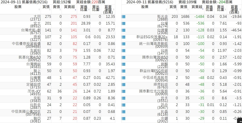 2024-0911關鍵券商買賣超 2024-09-11 股狗網小編 籌碼面每日資訊 發表留言 關鍵券商買賣超: 臺銀證券(1040): 台灣摩根士丹利(1470): 凱基台北(9268): 凱基信義(9216): 元大土城永寧(9875): 康和永和(845B) : 富邦建國(9658): 免責宣言 本網站文章所提供資訊僅供參考,並無任何推介買賣之意,投資人應自行承擔交易風險。 分享此文: 分享到 X(在新視窗中開啟) X 分享到 Facebook(在新視窗中開啟) Facebook 喜歡 正在載入...