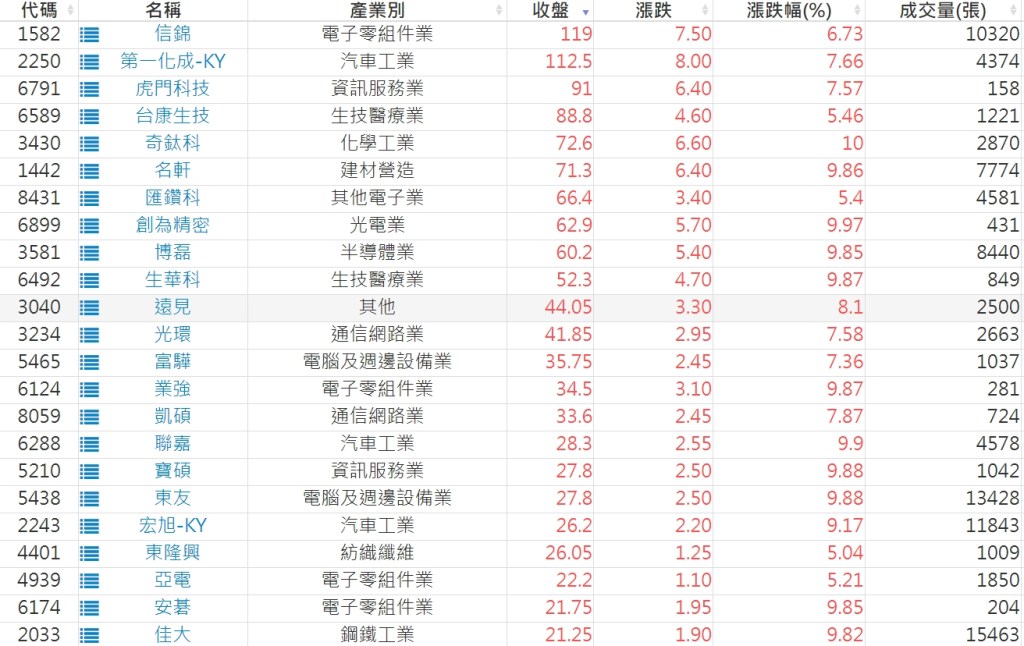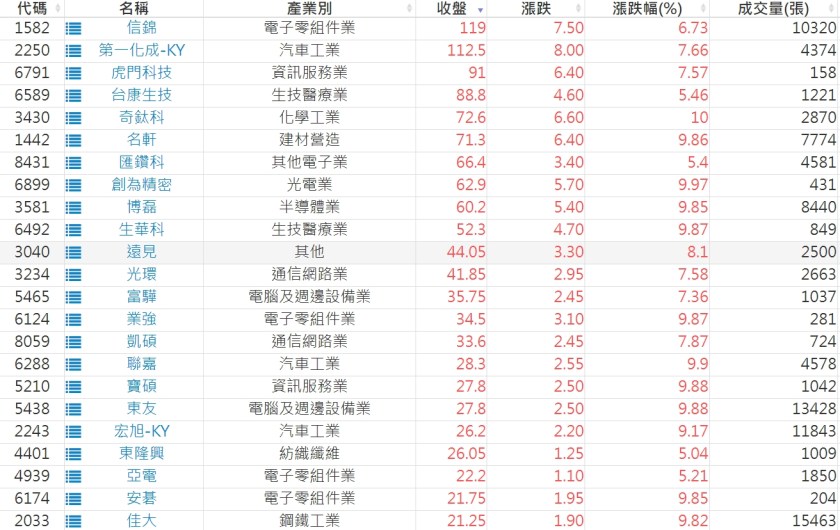 2024-0918日新高爆量上漲股 2024-09-18 股狗網小編 選股條件 發表留言 利用股狗選股的選股條件可以【挑選突破20日新高,爆量上漲起漲點股票】 1.股狗選股 https://www.stockdog.com.tw 2.選股條件: a.收盤價創20日新高 b.當日漲幅 > 2% C.成交量大於5日均量2倍 免責宣言 本網站文章所提供資訊僅供參考,並無任何推介買賣之意,投資人應自行承擔交易風險。 分享此文: 按一下即可分享至 X(在新視窗中開啟) X 按一下以分享至 Facebook(在新視窗中開啟) Facebook 喜歡 正在載入...