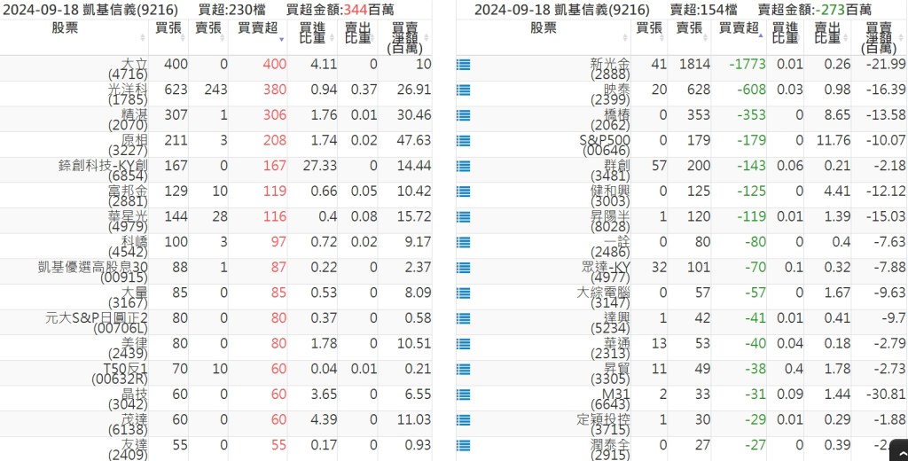 2024-0918關鍵券商買賣超 2024-09-18 股狗網小編 籌碼面每日資訊 發表留言 關鍵券商買賣超: 臺銀證券(1040): 台灣摩根士丹利(1470): 凱基台北(9268): 凱基信義(9216): 元大土城永寧(9875): 康和永和(845B) : 富邦建國(9658): 免責宣言 本網站文章所提供資訊僅供參考,並無任何推介買賣之意,投資人應自行承擔交易風險。 分享此文: 按一下即可分享至 X(在新視窗中開啟) X 按一下以分享至 Facebook(在新視窗中開啟) Facebook 喜歡 正在載入...