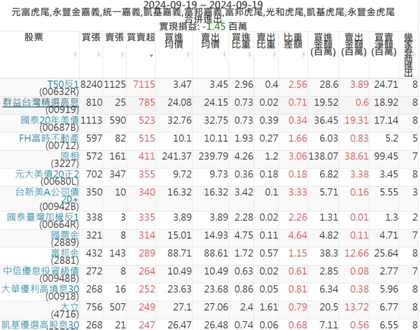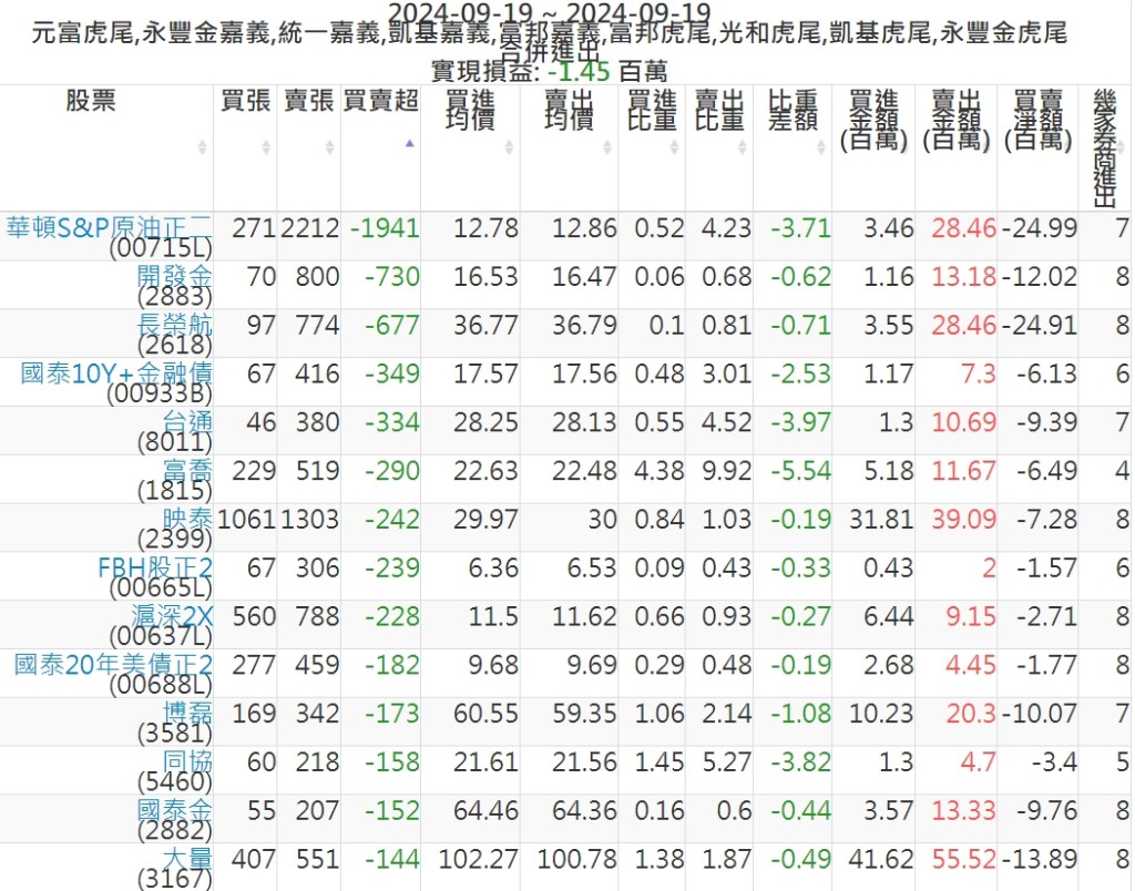 2024-0919主力買賣超個股 2024-09-20 股狗網小編 籌碼面每日資訊 發表留言 可參考下文 『如何查詢當沖、隔日沖分公司券商買賣』 主力當沖券商: 『元富虎尾』,『永豐金嘉義』,『統一嘉義』,『凱基嘉義』,『富邦嘉義』,『富邦虎尾』,『光和虎尾』,『凱基虎尾』,『永豐金虎尾』。 『當沖標的』 『買超股票』 『賣超股票』 免責宣言 本網站文章所提供資訊僅供參考,並無任何推介買賣之意,投資人應自行承擔交易風險。 分享此文: 按一下即可分享至 X(在新視窗中開啟) X 按一下以分享至 Facebook(在新視窗中開啟) Facebook 喜歡 正在載入...