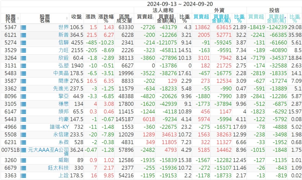 2024/09/13~2024/09/20近5日【投信】買賣超個股 2024-09-22 股狗網小編 投資誌-大盤 發表留言 【上市投信買超個股】(以金額排行,單位:萬) 【上市投信賣超個股】(以金額排行,單位:萬) 【上櫃投信買超個股】(以金額排行,單位:萬) 【上櫃投信賣超個股】(以金額排行,單位:萬) 免責宣言 本網站文章所提供資訊僅供參考,並無任何推介買賣之意,投資人應自行承擔交易風險。 分享此文: 分享到 X(在新視窗中開啟) X 分享到 Facebook(在新視窗中開啟) Facebook 喜歡 正在載入...
