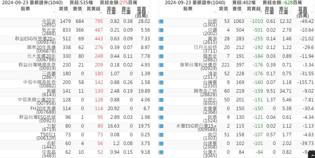 2024-0923關鍵券商買賣超 2024-09-23 股狗網小編 籌碼面每日資訊 發表留言 關鍵券商買賣超: 臺銀證券(1040): 台灣摩根士丹利(1470): 凱基台北(9268): 凱基信義(9216): 元大土城永寧(9875): 康和永和(845B) : 富邦建國(9658): 免責宣言 本網站文章所提供資訊僅供參考,並無任何推介買賣之意,投資人應自行承擔交易風險。 分享此文: 按一下即可分享至 X(在新視窗中開啟) X 按一下以分享至 Facebook(在新視窗中開啟) Facebook 喜歡 正在載入...