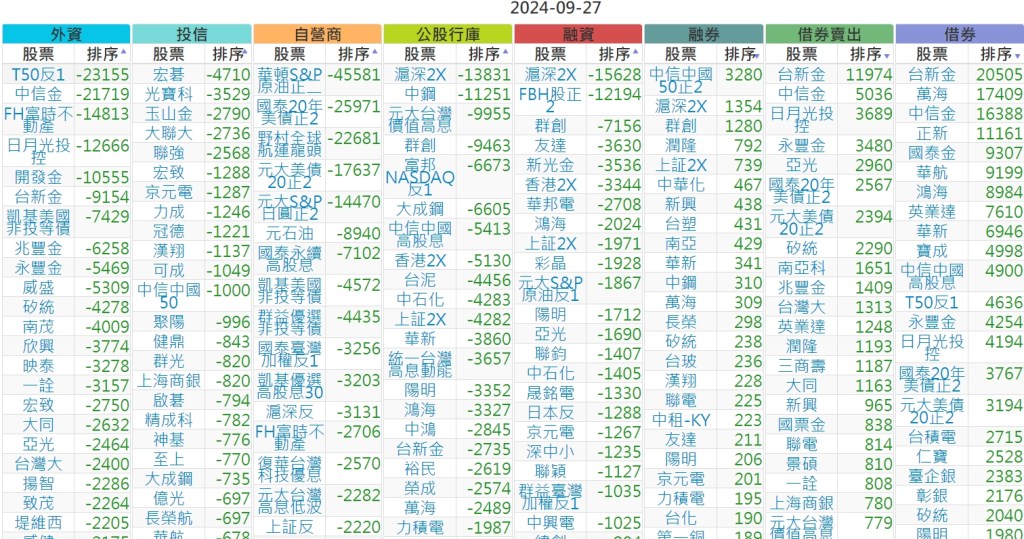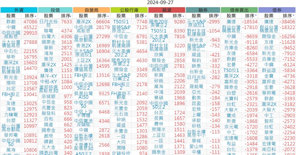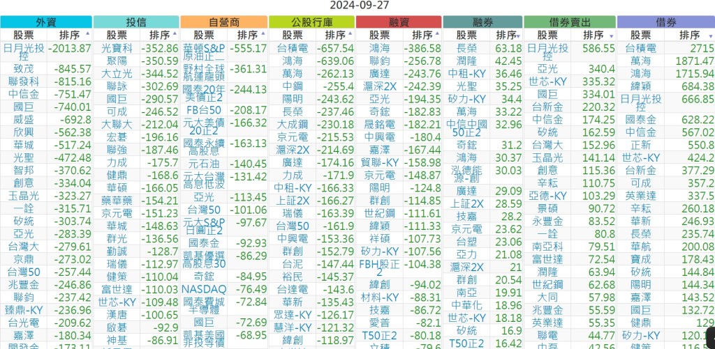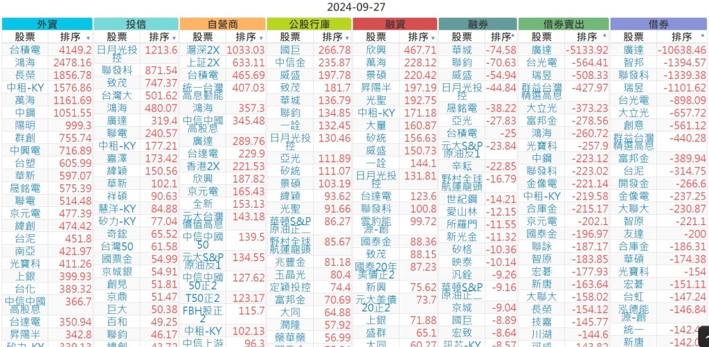2024-0927【外資、投信】買賣超個股 2024-09-28 股狗網小編 投資誌-大盤 發表留言 上市:【外資、投信】買超(依金額) (單位:百萬) 上市:【外資、投信】賣超(依金額) (單位:百萬) 上市:【外資、投信】買超(依張數) (單位:張數) 上市:【外資、投信】賣超(依張數) (單位:張數) 免責宣言 本網站文章所提供資訊僅供參考,並無任何推介買賣之意,投資人應自行承擔交易風險。 分享此文: 分享到 X(在新視窗中開啟) X 分享到 Facebook(在新視窗中開啟) Facebook 喜歡 正在載入...