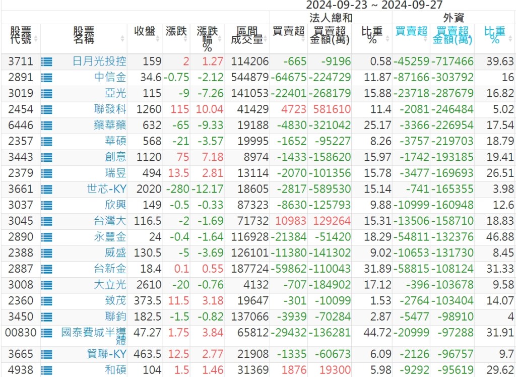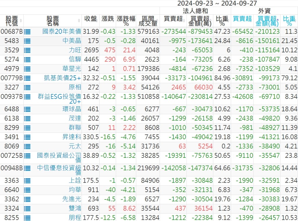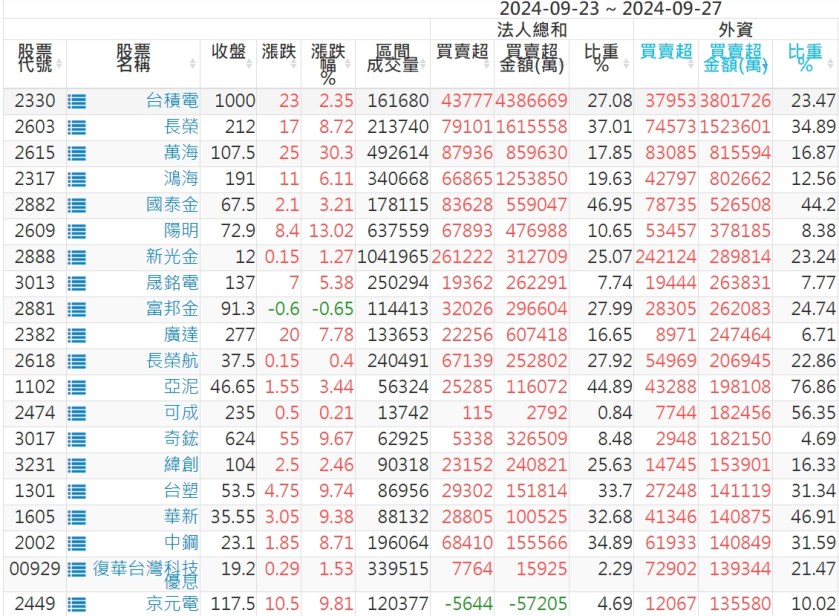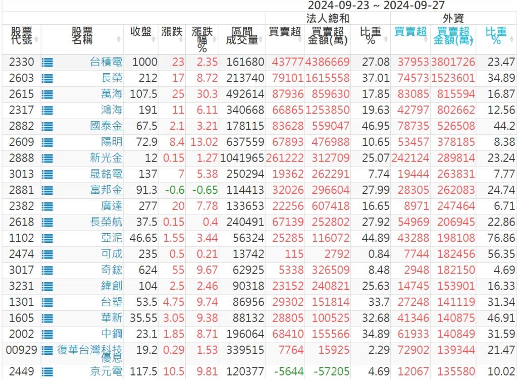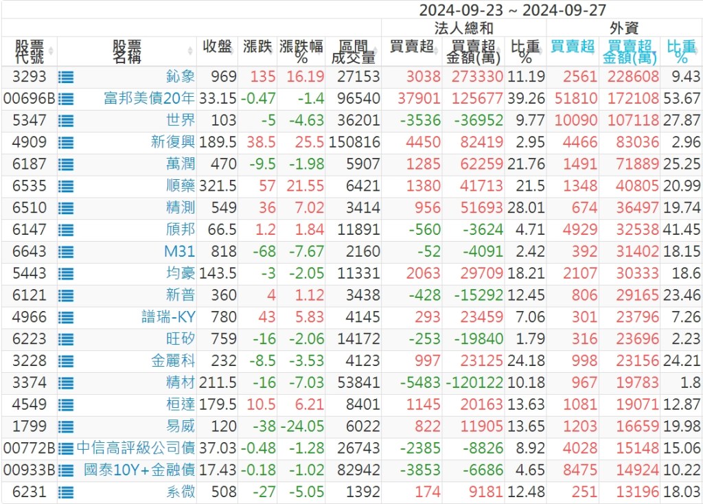 2024/09/23~2024/09/27近5日【外資】買賣超個股 2024-09-29 股狗網小編 投資誌-大盤 發表留言 外資本周累積【買超】約1028億元。 【上市外資買超個股】(以金額排行,單位:萬) 【上市外資賣超個股】(以金額排行,單位:萬) 【上櫃外資買超個股】(以金額排行,單位:萬) 【上櫃外資賣超個股】(以金額排行,單位:萬) 免責宣言 本網站文章所提供資訊僅供參考,並無任何推介買賣之意,投資人應自行承擔交易風險。 分享此文: 分享到 X(在新視窗中開啟) X 分享到 Facebook(在新視窗中開啟) Facebook 喜歡 正在載入...