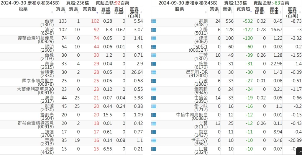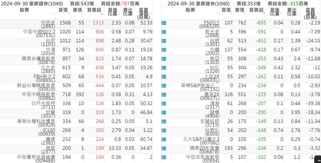 2024-0930關鍵券商買賣超 2024-09-30 股狗網小編 籌碼面每日資訊 發表留言 關鍵券商買賣超: 臺銀證券(1040): 台灣摩根士丹利(1470): 凱基台北(9268): 凱基信義(9216): 元大土城永寧(9875): 康和永和(845B) : 富邦建國(9658): 免責宣言 本網站文章所提供資訊僅供參考,並無任何推介買賣之意,投資人應自行承擔交易風險。 分享此文: 分享到 X(在新視窗中開啟) X 分享到 Facebook(在新視窗中開啟) Facebook 喜歡 正在載入...
